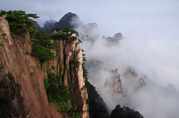 始信峰的特點是巧石爭妍,奇松林立,三面臨空,懸崖千丈,云蒸霞蔚,風(fēng)姿獨秀。