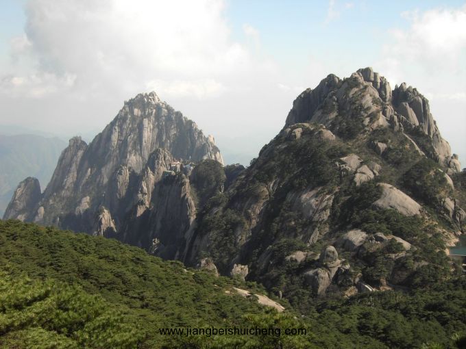 天都峰,途中有一段長10余米,寬僅1米的“鯽魚背”,兩側是千仞懸崖,深邃莫測,其形頗似出沒于波濤之中的魚之背,故名。自上而下,坡陡達85度左右,若遇風吹云涌,仿佛山搖石動,游客至此無不戰(zhàn)戰(zhàn)兢兢,有“天都欲上路難通”感慨。民國二十六年(1937)建登峰梯道,長3里,有1564級臺階,194個石欄干和600米鐵索,保障游人安全攀登絕頂。1984年于峰腰另辟新徑至峰頂。站在峰頭遠眺,云山相接,江河一線,俯瞰群山,千峰競秀,風光無比壯麗。古有詩贊曰:“任他五岳歸來客,一見天都也叫奇。”民謠云:“不到天都峰,白跑一場空?!币鉃榇朔鍨橛吸S山必游之地。