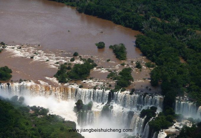 位于最西邊的是“魔鬼瀑布”,魔鬼瀑布最為氣勢磅礴,以排山倒海之勢直落深淵。轟鳴聲震耳欲聾。強(qiáng)烈的威懾力使人不敢靠近;“主瀑布”在中間,主瀑布高122米、寬約1800米,落差約93米。流量最大,中間有一條縫隙;東側(cè)是“馬蹄瀑布”,它因被巖石遮擋為馬蹄狀而得名;像巨簾一般的“彩虹瀑布”則位于“馬蹄瀑布”的東邊,空氣中的水點(diǎn)折射陽光,產(chǎn)生美麗的彩虹。彩虹瀑布即因時(shí)??梢詮闹锌吹狡呱屎缍妹?。水霧形成的彩虹遠(yuǎn)隔20公里以外就能看到,彩虹經(jīng)常在飛濺的水花中閃爍,并且能上升到305米的高度。在月色明亮的晚上,水氣更會(huì)形成奇異的月虹;“東瀑布”是最東的一段,該瀑布在旱季時(shí)往往是陡崖峭壁,雨季才成為掛滿千萬條素練般的瀑布。