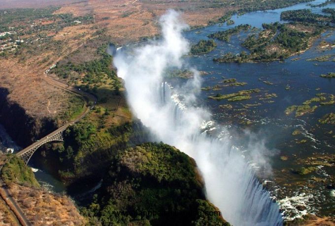 1855年11月,蘇格蘭傳教士和探險(xiǎn)家戴維·利文斯敦成為第一個(gè)到達(dá)維多利亞瀑布的歐洲人。這是世界上最壯觀的瀑布之一。位于贊比西河上,寬度超過兩公里,瀑布奔入玄武巖海峽,水霧形成的彩虹遠(yuǎn)隔二十公里以外就能看到。