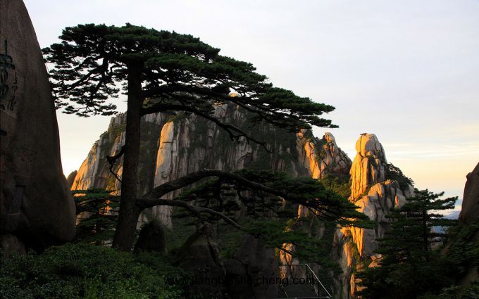 被譽(yù)為“天下第一奇山”的黃山,以奇松、怪石、云海、溫泉“四絕”聞名于世,而人們對(duì)黃山奇松,更是情有獨(dú)鐘。山頂上,陡崖邊,處處都有它們?yōu)t灑、挺秀的身影。黃山最妙的觀松處,當(dāng)然是曾被徐霞客稱(chēng)為“黃山絕勝處”的玉屏樓了。樓前懸崖上有“迎客”、“陪客”、“送客”三大名松。迎客松姿態(tài)優(yōu)美,枝干遒勁,雖然飽經(jīng)風(fēng)霜,卻仍然郁郁蒼蒼,充滿(mǎn)生機(jī)。
