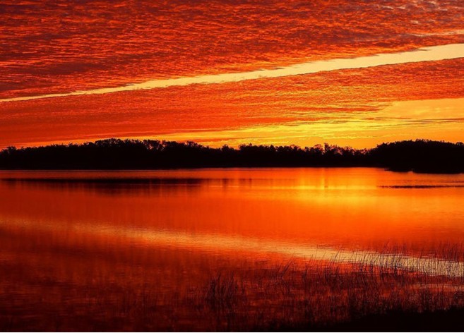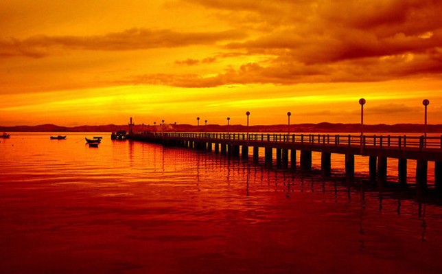 不少優(yōu)秀的日出日落攝影作品都是在水邊完成的,因為在日出或者日落的時候,波光鱗鱗的水面倒映出美麗的彩霞,水面上的船只帆影給畫面平添了幾分生動,確實是很不錯的攝影題材。拍攝水面倒影會使日出和日落的照片增色,平靜的海面或湖面能反映天空中的景物。呈現(xiàn)出如鏡中一樣的影象,而拂過水面的微風總是會擾動這種倒影。在水面上留下條更加耀眼的光線,并從地平線到畫面的前景之間勾畫出一條光路,當太陽漸漸下落時,這條光路會延伸到你的眼前。所以,在水邊拍攝的時候首先需要注意的是構圖的因素,按下快門之前,是不是已經將水平線擺好了位置?是不是已經將我需要的景物都包含進去了?這些都是值得注意的問題。測光的時候,一般是選擇平均測光模式,這樣才能使整個畫面的光線分布均勻,不至于過曝或者欠曝。