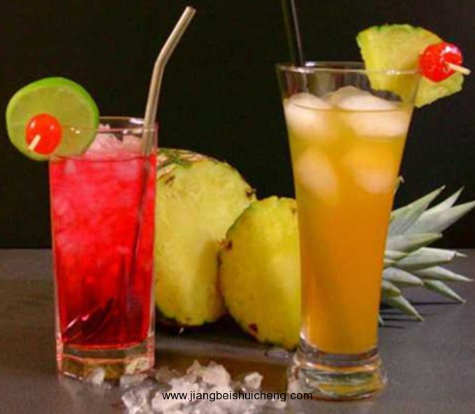 配料:30毫升伏特加,30毫升桃子利口酒,60毫升菠蘿汁,60毫升小紅莓汁