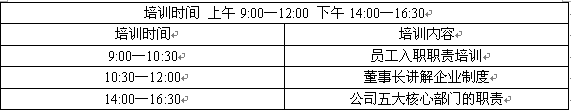 培訓(xùn)時(shí)間一天,內(nèi)容包括:辦公室、財(cái)務(wù)、網(wǎng)絡(luò)、客服、業(yè)務(wù)(計(jì)調(diào)、前臺(tái)、導(dǎo)游)培訓(xùn),企業(yè)制度培訓(xùn)等。上午是《聊之旅員工入職職責(zé)》的培訓(xùn),從員工試用期開始到正式簽訂工作協(xié)議,對(duì)職業(yè)準(zhǔn)則以及員工行為準(zhǔn)則都進(jìn)行了詳細(xì)地說(shuō)明,員工所關(guān)心的的薪酬問題、績(jī)效問題也在文件中提及。
