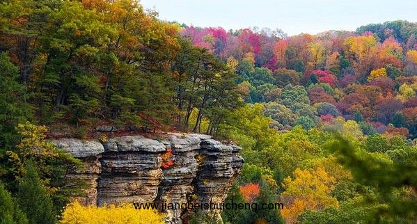 從9月中旬,漆樹、黃楊、山毛櫸等率先以深紅、鵝黃拉開了秋的序幕;隨后,糖楓、紅楓、西克莫楓等上百種楓樹也慢慢由黃色、橙色轉(zhuǎn)變成紅色,與交織其中的綠松、杉樹共同譜寫出秋的主旋律;而伴隨著越來越長的夜晚、越來越?jīng)鏊奶鞖?,北方紅楓等加?xùn)|常見的樹木,以深沉的紅褐色預(yù)告著秋天即將謝幕。當(dāng)這些如馬賽克般紅的、黃的、橘紅的、褐色、金黃的色彩掩映在碧水藍(lán)天之間,你會驚嘆于造物主的巧奪天工。