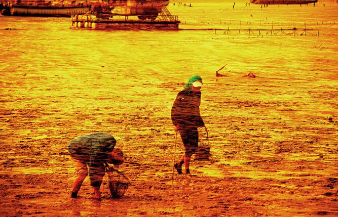 第二天早餐后驅(qū)車紅光漁業(yè)社,乘船隨潮水下海拍攝拾貝、踩蛤場景。午餐在船上食用,盡享漁民生活。下午2點左右返回,拍攝沿海的濕地風(fēng)光后返程。