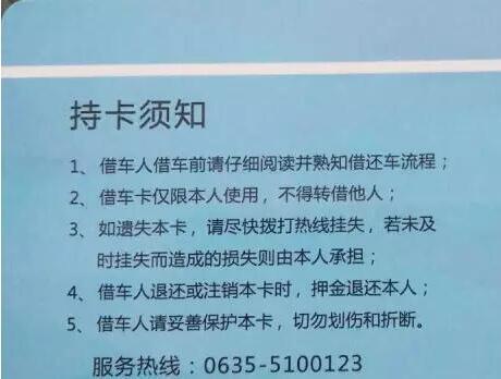 2、借車卡限由持卡人使用,不得轉借他人使用,發(fā)生的一切問題由持卡人負責;