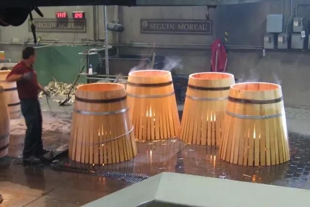 經(jīng)過(guò)烘烤的橡木條更容易彎曲成桶,此外,經(jīng)過(guò)烘烤后的橡木桶,有利于陳釀的酒液從中獲取更多的風(fēng)味。而經(jīng)過(guò)不同程度烘烤的橡木桶,會(huì)給葡萄酒帶來(lái)不同的風(fēng)味:輕度烘烤的橡木桶,桶壁的顏色改變很小,在其中陳釀的葡萄酒香氣不會(huì)受很大影響,仍是果香充沛,但能從橡木中萃取較多的單寧;中度烘烤的橡木桶,桶壁顏色變得更棕,單寧相比于前者會(huì)比較柔和,果香中還能透露出香草或咖啡的醇香;重度烘烤的橡木桶,桶壁顏色非常深,甚至已經(jīng)出現(xiàn)烤焦層,這樣酒液獲取的單寧很少,更多的是濃郁的煙熏、咖啡、豆蔻等辛香味,整體風(fēng)格是圓潤(rùn)順滑的。
