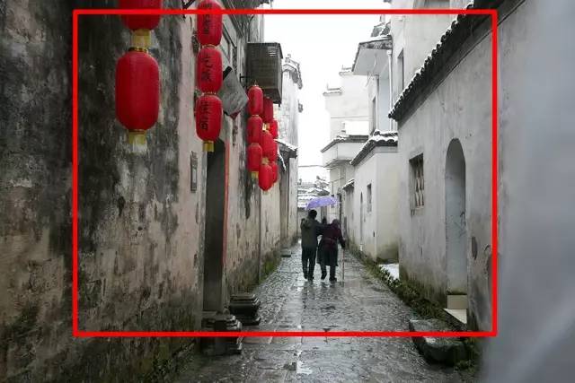 點(diǎn)評(píng):濕漉漉的青石板路,巷子邊上的引導(dǎo)線把觀眾的視線引到畫(huà)面中心的兩人身上,大紅燈籠更是點(diǎn)綴了整幅作品的基調(diào)。只是右側(cè)白墻的虛影擾亂視線,可剪裁掉,使畫(huà)面中心更突出。