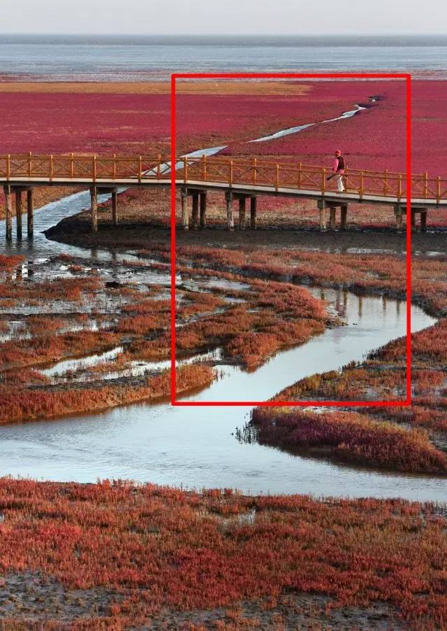 點(diǎn)評(píng):圖片概括的東西較多,上半部的天空和海邊有些空,下半部海灘也顯得不太純凈,裁剪后只表現(xiàn)灘涂的一部分,更干凈、緊湊。