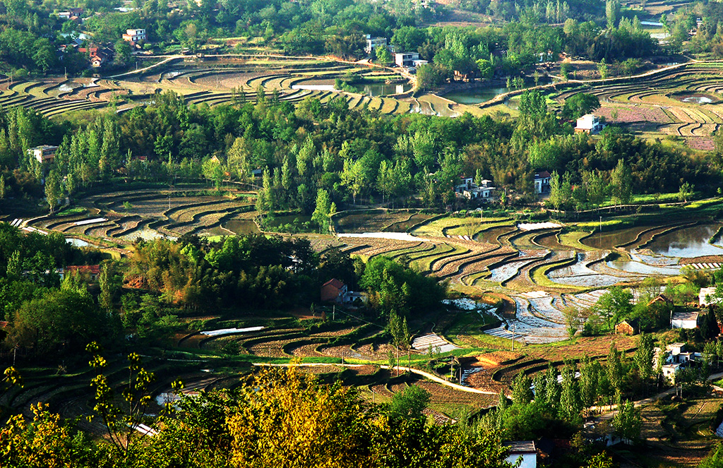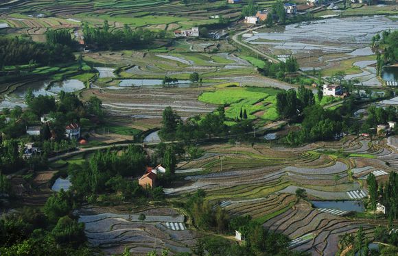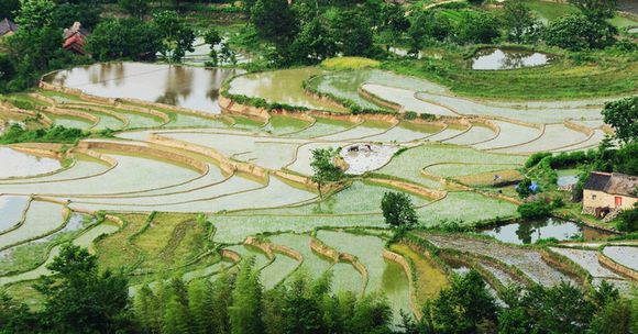 如果說云南、貴州、廣西、四川的梯田是是壯美的樂章,那么固始梯田就是靈動的音符。如果你來到固始,你就感受到固始武廟梯田別有一番獨特美景。她鑲嵌在青山碧水之中,房舍阡陌點綴其間,小巧雅致,玲瓏剔透,如世外桃源,似天上人間。。。。。。