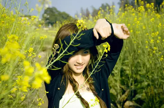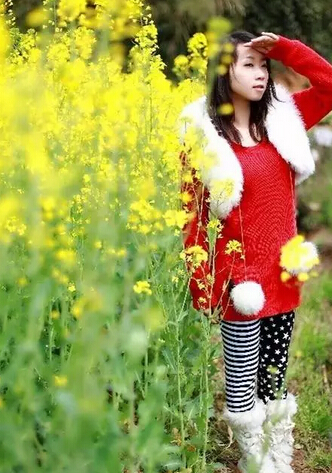 油菜花屬于清新系列的色調(diào),搭配的服裝,顏色一定選擇淺色系的,千萬(wàn)不要想著去和花爭(zhēng)艷,穿個(gè)大紅大紫的。