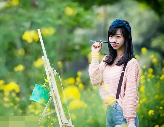 3、高級(jí)——畫(huà)板,帶著畫(huà)板,整個(gè)構(gòu)圖就會(huì)更豐富,表情一定要夠生動(dòng),要展現(xiàn)一個(gè)在油菜花地里寫(xiě)生的文藝狗,但是用畫(huà)板的話一定要注意構(gòu)圖,注意畫(huà)板擺放的角度和位置。