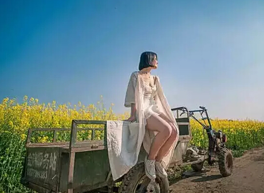 1、走進(jìn)菜田,依然選擇低機(jī)位拍人物特寫(xiě),那既然是到了菜田里面,人和景就得都有所顧及,那究竟是人襯景,還是景襯人就不好說(shuō)了。而低機(jī)位的作用就是能把花拍得高大上一點(diǎn),這一點(diǎn)尤其在花不是很多得情況下非常適用,即算是在你自家得菜地里,只要有一小戳菜花,都能拍出花海的感覺(jué),簡(jiǎn)直是沒(méi)時(shí)間出門(mén)的姑娘們的朋友圈秀恩愛(ài)必備。