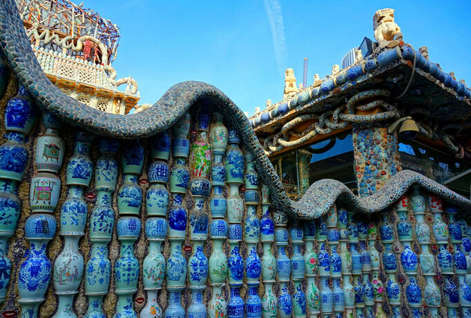 瓷房子(赤峰道):這是一座用數(shù)萬件古董瓷片裝修而成的法式洋樓,它的前身是歷經(jīng)百年的法式老洋樓,為房主張連志親自設計。