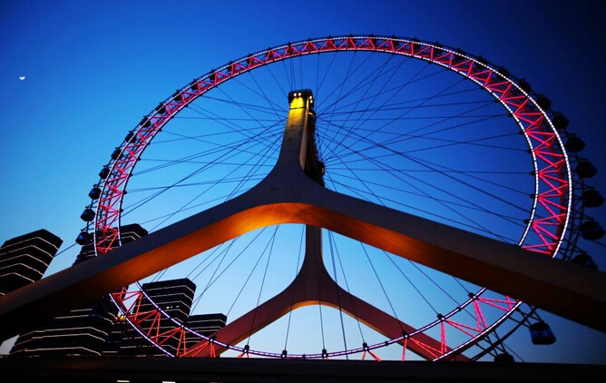 天津之眼:天津之眼適合在晚上去座,夜晚俯瞰天津的夜景很美。