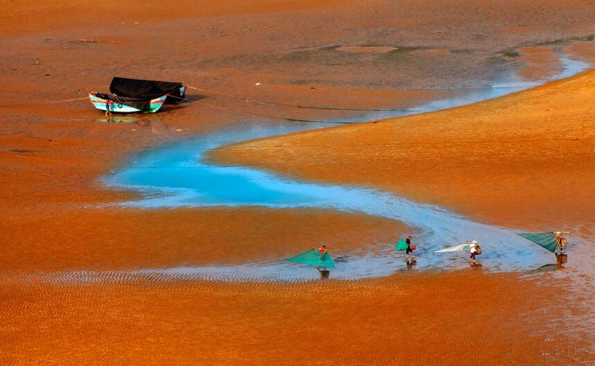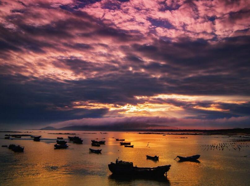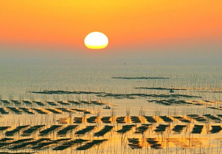 這里四季的潮汐變化、天光云影、原生態(tài)的海事活動,讓美麗神奇的海域瞬間迥異奇妙無比。那詭譎神秘的滿海竿影,那夢幻般的海上家園,那鷗鳥掠過浪尖撲騰灘涂,那金色沙灘褐色礁叢,那港灣遠空的一抹紅云束光,海上日出日落……都是那樣靈動令奇絕。