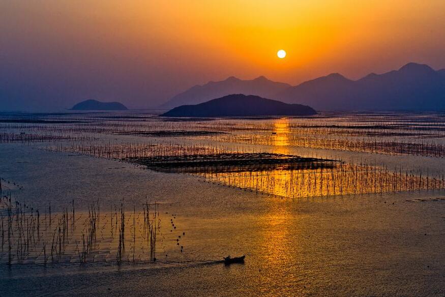 上午拍攝【北兜】一帶拍攝海上日出,接著到【沙江】,可以看到眾多線條優(yōu)美的竹竿插在灘涂上,著名的“S”灣和漁船進出的繁忙景象。