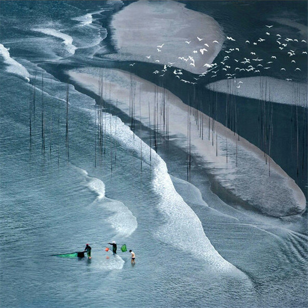 6.要充分利用霧霾天、薄陰天甚至雨天氣候以 及逆光手段拍好水墨味道作品,要充分利用晨昏低光的色溫拍攝油畫效果作品。先用廣角拍攝幾張大場景,之后用長焦慢慢切割和雕琢畫面,選擇不同的構(gòu)圖拍攝出新奇的畫面。對灘涂做精細切割畫面成小畫面得把握好幾點。