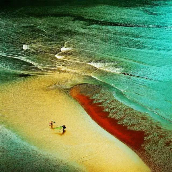 1.有人有景,營造情景交融的場景。霞浦灘涂常年都有人在勞作,點綴在灘涂上的人遠處看去雖然是星星點點的,但是往往是畫龍點睛之筆。