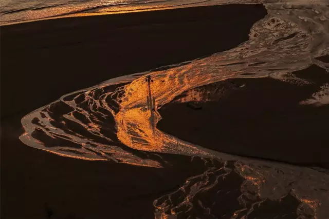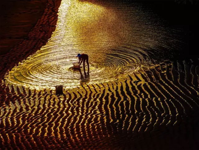 霞浦灘涂的虎皮般的紋路是由灘涂中沙粒和泥漿組成,潮水才退下時含有水分較多此時能反光,需要刻畫虎皮紋路鼓起的紋路,就得選擇光線低位的早晚拍攝,此時 的虎皮紋陰陽交錯,紋路格外明顯。