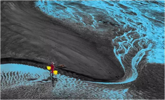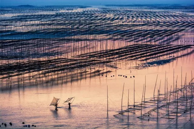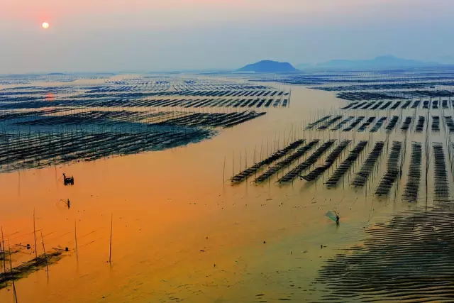霞浦灘涂常年都有人在勞作,點綴在灘涂上的人遠(yuǎn)處看去雖然是星星點點的,但是往往是畫龍點睛之筆。