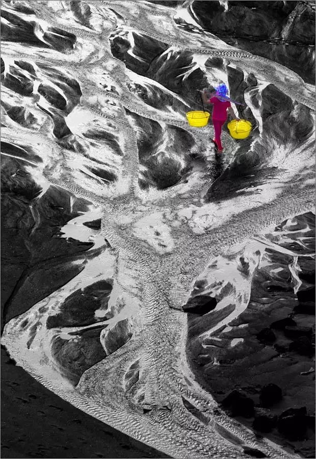 四、盡管拍攝霞浦灘涂各個焦段的鏡頭都能用上,但是拍得好的必然是擅于運(yùn)用長焦鏡頭的人,灘涂變化的復(fù)雜性決定了只有長鏡頭才能有可能在這一小片灘涂上做出一大篇“文章”來。