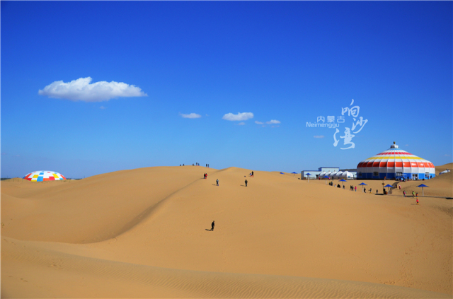 響沙灣位于內蒙古達拉特旗境內庫布其沙漠東端,是中國最大的沙漠旅游休閑度假地,國家5A級旅游景區(qū)。為中國三大鳴沙山之一,神秘的沙歌現(xiàn)象吸引著中外游客紛至沓來,融匯了雄渾的大漠文化和深厚的蒙古底蘊, 匯萃了激情的沙漠活動與獨特的民族風情,擁有世界第一條沙漠索道、中國最大的駱駝群、中國一流的蒙古民族藝術團。