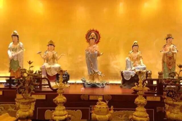 第四層為圓通寶殿。觀音菩薩的事跡在此得以呈現(xiàn), 整層按《觀音60靈簽》來供奉60尊法相莊嚴、慈悲之觀音菩薩,我們用傳統(tǒng)木雕及彩繪貼金工藝來制作,菩薩神態(tài)寧靜祥和,呈現(xiàn)出一片清凈無比,至真至善至美的觀音菩薩的凈土。