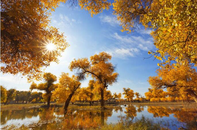 每年秋天,九月底到十月中旬的金色秋天(9月25日—10月15日),是去額濟(jì)納旗看胡楊林的最佳季節(jié)。當(dāng)?shù)卣磕甓紩?huì)在9月25號(hào)左右向林區(qū)灌溉水,使胡楊林在十一黃金周期間將自己最美的景色呈現(xiàn)在游人眼前。