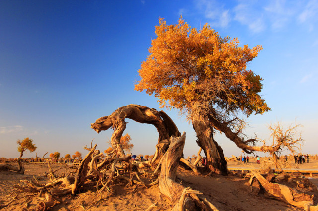 到了10月15號(hào)左右,隨著寒風(fēng)的到來(lái),一樹(shù)的絢爛又將變成滿地金黃。等胡楊樹(shù)葉子落盡,美景不在,只有再等待第二年的秋天。