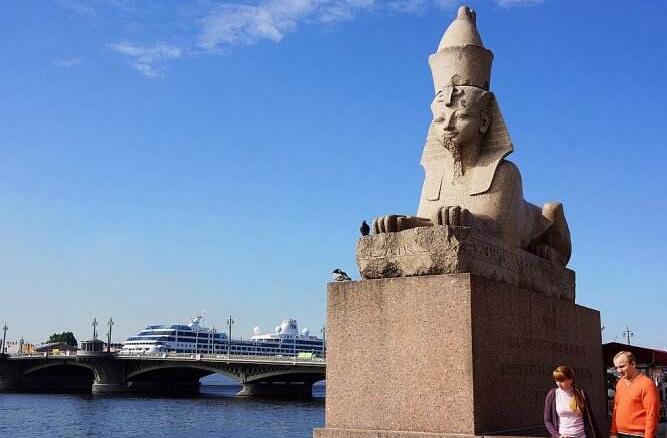 【獅身人面像雕塑】(參觀約10分鐘)這對獅身人面像是15世紀(jì)從埃及出土的文物,由俄羅斯政府購買并運回圣彼得堡擺放在了涅瓦河畔。