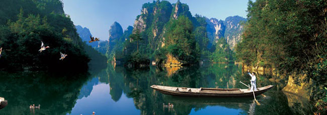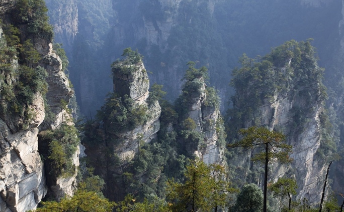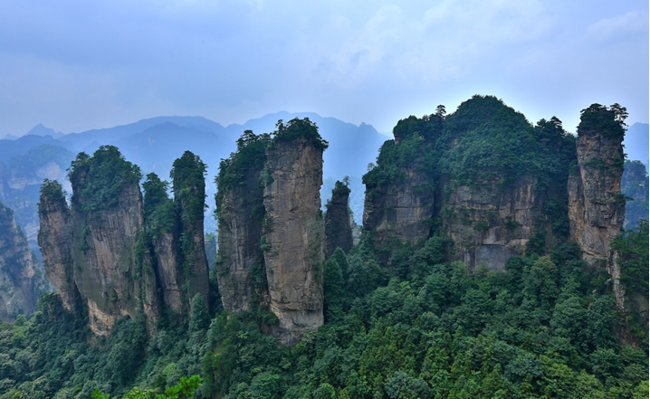 張家界以其得天獨(dú)厚的旅游資源聞名于世。以中國(guó)第一個(gè)國(guó)家級(jí)森林公園張家界和天子山、索溪峪兩個(gè)自然保護(hù)區(qū)組成的武陵源風(fēng)景區(qū)面積達(dá)369平方公里,區(qū)內(nèi)以世界罕見的石英砂巖峰林峽谷地貌為主體,集桂林之秀、黃山之奇、華山之險(xiǎn)、泰山之雄于一體,藏賂、橋、洞、湖、瀑于一身,有“擴(kuò)大的盆景、縮小的仙山”之美稱。