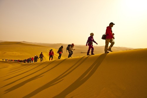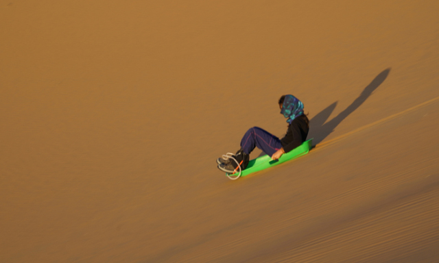 沙漠的山丘每天都在變,一陣狂風(fēng)之后,原本的平底會突然變成一個沙丘,這樣的沙丘到處都是,滑沙就是沙漠最有樂趣的事情!
