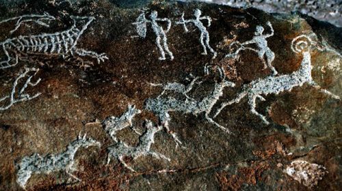 巖畫是一種石刻文化,人類祖先以石器作為工具,用粗獷、古樸、自然的方法--石刻,來描繪、記錄他們的生產(chǎn)方式和生活內(nèi)容,它是人類社會的早期文化現(xiàn)象,賀蘭山巖畫是史前文明的搖籃。