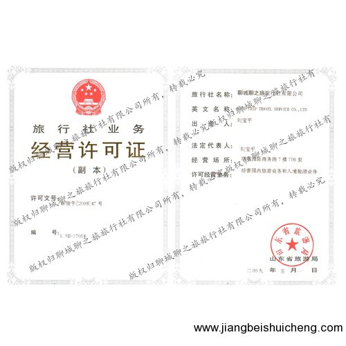 首先要看“一證、一照”是否齊全,即工商部門頒發(fā)的營業(yè)執(zhí)照和旅游部門頒發(fā)的旅行社業(yè)務(wù)經(jīng)營許可證,且年檢合格。若是出境游,還需進(jìn)一步確認(rèn)其經(jīng)營范圍,查看是否具備出境游的經(jīng)營資格。