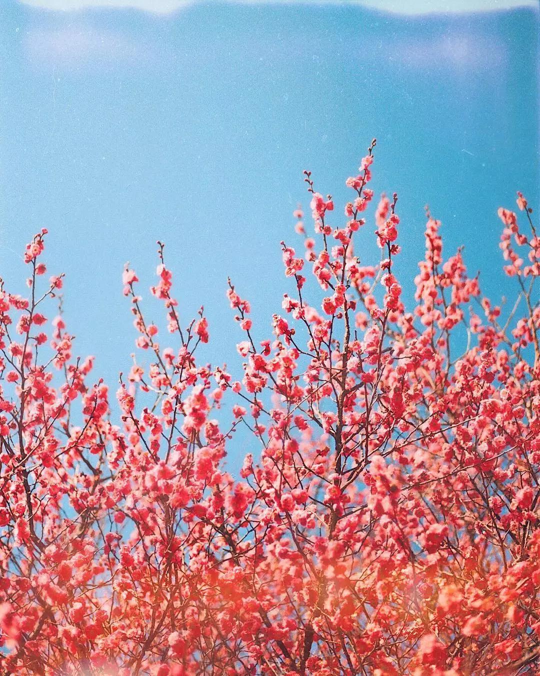 留白簡直是拍照的萬能公式,不管什么都可以這樣拍。畫面不需要太多元素,找好角度,多把開花的樹枝處在畫面的對角處,采用對角線構(gòu)圖。