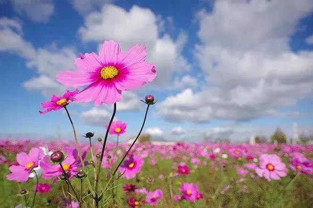 以天空作為背景拍攝,需要注意控制曝光,一定要以花朵為基準控制曝光,寧愿讓天空過曝些也不要讓花朵本體發(fā)黑。當然,如果天空真的特別亮,過曝的程度比較嚴重,那就需要你擴大花朵本身的畫面比例,拍攝特寫,以減少過曝部分的面積。