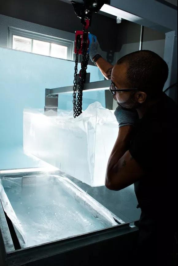 冰板制作好后,調(diào)酒師將對(duì)其進(jìn)行人工切割,不斷地切成小塊,然后再將這些小塊一一鑿成需要的形狀。如果說(shuō)一個(gè)高人氣(high-volume)酒吧只使用手工制作的冰塊,那么粗略計(jì)算一下,這個(gè)酒吧每晚都需要一個(gè)調(diào)酒師專門鑿冰,并且馬不停蹄地鑿一個(gè)半小時(shí)。London Cocktail Club bars在去年一共賣出大約14萬(wàn)杯老式雞尾酒,如果使用手鑿冰塊,可想而知這背后所需的人力和時(shí)間多么龐大。