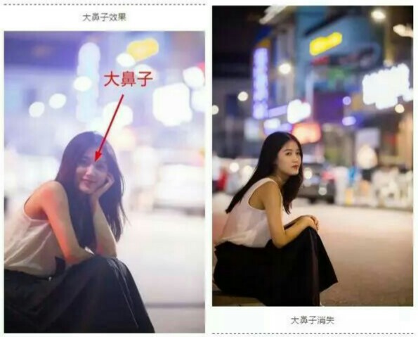 使用路燈作為光源拍攝時(shí),還有一點(diǎn)需要注意:模特正好坐在路燈的正下方,就會(huì)產(chǎn)生“大鼻子”的效果。如果讓模特退幾步,讓路燈光斜照到模特臉上,就沒(méi)有大鼻子了。