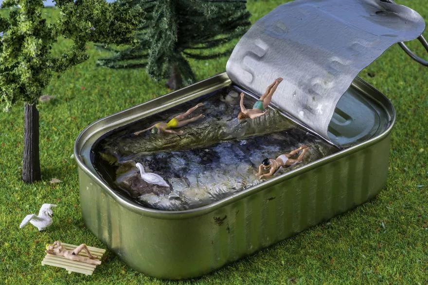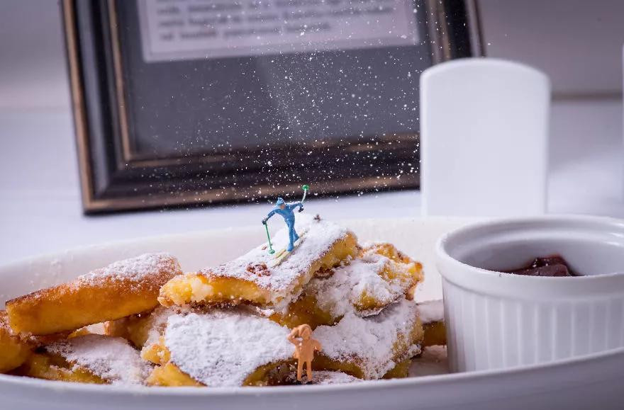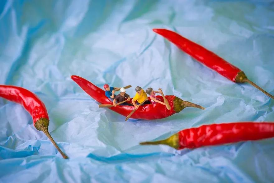 來自匈牙利布達佩斯的美食攝影師彼得近三年改變了以往的攝影風(fēng)格,他利用微縮模型、食物和日常用品搭配組合,創(chuàng)造了一個名為“Tiny Wasteland”(袖珍荒原)的攝影系列。