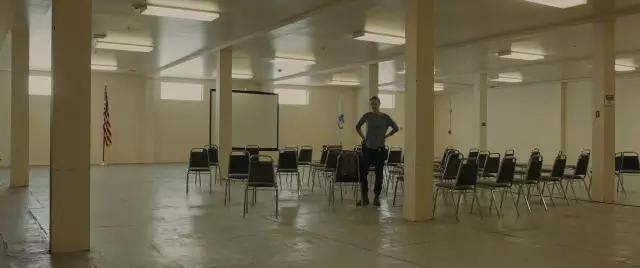 Deakins: 拍攝前我去了兩次,第一次機(jī)械組和電氣組放了一半的頂燈,因?yàn)槲蚁肟纯?/span>2K Blonde的實(shí)際效果,不想拍攝當(dāng)天匆匆忙忙的然后搞砸了。第二次去所有燈都架好了,連上了調(diào)光器。我想讓大多數(shù)非法移民蹲著的中間區(qū)域是最亮的,外圍的燈稍微調(diào)暗,中央的燈全開(kāi),這樣有個(gè)亮度和顏色漸變,因?yàn)橥鈬臒舭盗?,所以顏色?huì)暖一些。我們留了幾盞鈉蒸汽燈在西墻上。把Blonde調(diào)暗并加上1/4 CTO,頂燈看上去很像鈉蒸汽燈,但還沒(méi)有那么的發(fā)橙紅色。