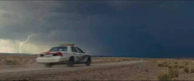 但我們當(dāng)時(shí)拍攝的季節(jié)是一年中最糟糕的,每天晚上天空都非常陰沉,電閃雷鳴,我從沒(méi)見(jiàn)過(guò)那么多的閃電。這明顯不是計(jì)劃之中,但我們立馬欣然接受了現(xiàn)實(shí)。我們拍墨西哥警察開(kāi)向天邊的鏡頭時(shí),有兩束非常不祥的閃電,我當(dāng)時(shí)告訴自己:“這太過(guò)了,絕對(duì)不能放進(jìn)片子里”,但它就是發(fā)生了,又有什么辦法呢。