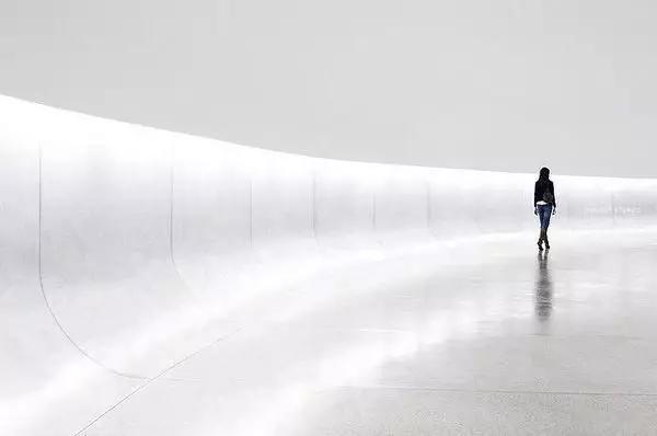 如果極簡主義作品還能夠說故事的話,必將會提升一個層次。例如,極簡風(fēng)格的街頭攝影就是將“人”作為主要元素,因為即使人物所占畫面不多,也往往會成為照片的焦點,而人與背景的互動,會帶來豐富的故事性。注意背景的畫面,例如平行、引導(dǎo)線、弧形,都可以輔助主體,構(gòu)成漂亮的作品。