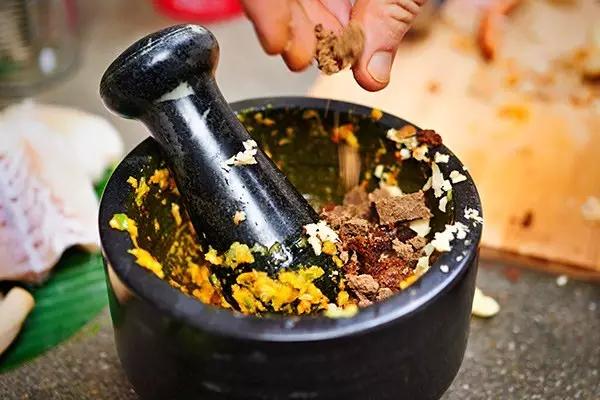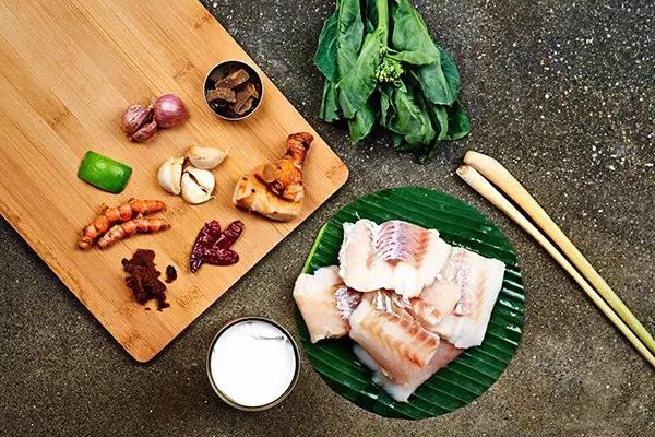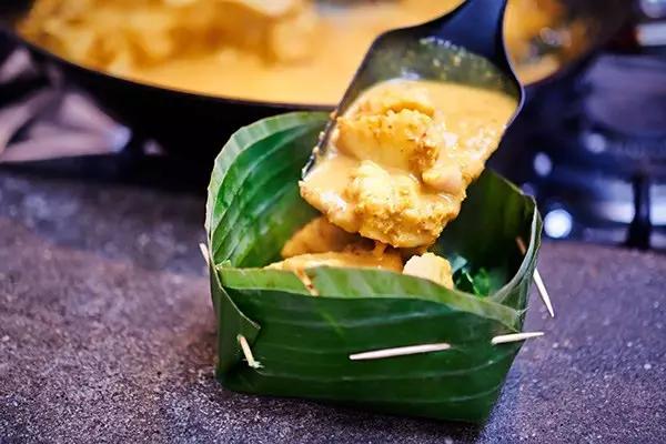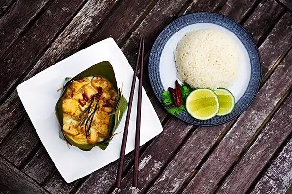 這道菜原本是古高棉人用來慶祝水節(jié)的美食,將肉類(魚、雞、豬、牛肉)裹在香蕉葉中烘烤,再加入椰汁、椰漿、高棉咖喱醬、檸檬葉和當(dāng)?shù)厥卟?,上桌以后不僅顏值高,椰香魚香葉香渾然一體,口感綿密有點像咖喱。