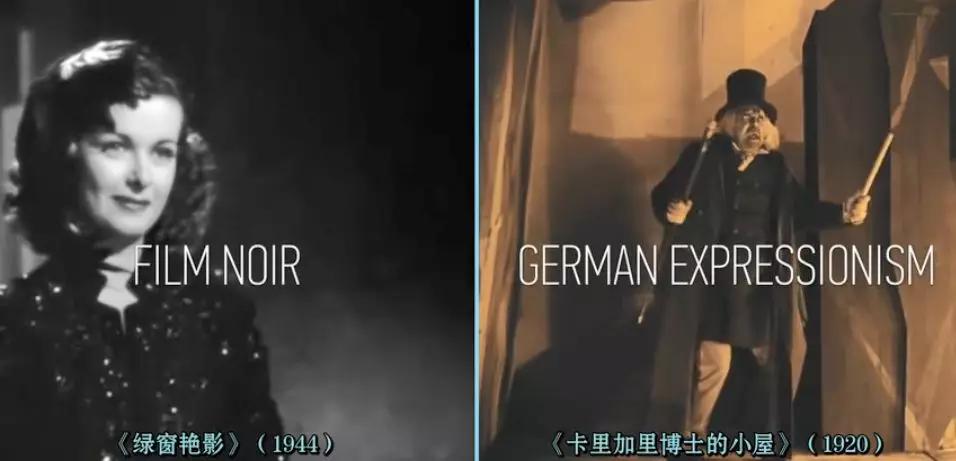 左:黑色電影 / 玄色影戲;右:德國表現(xiàn)主義