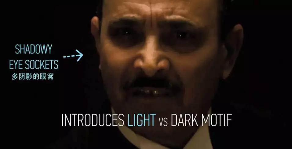 在柯里昂家族的陰影世界中,光亮與黑暗的強(qiáng)烈沖突具象化了每個(gè)人內(nèi)心善良與邪惡的斗爭。(LIGHT VS DARK = GOOD VS EVIL)