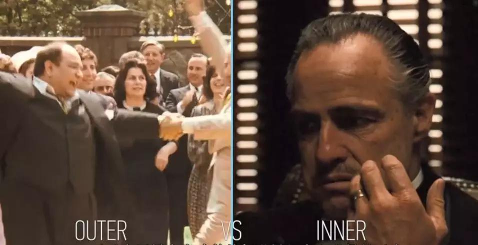 這樣的處理手法在視覺上強(qiáng)調(diào)了遜尼做事過于光明磊落,他沒有維托和邁克所展現(xiàn)出的那種精神生活和內(nèi)在的黑暗。