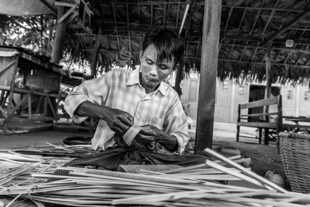 緬甸漆器的胎體主要是用竹篾手工編織而成。不論是精致小巧的手鐲和碗勺,還是個體很大的花瓶和屏風(fēng),都是用竹篾編織后多次上漆制成。