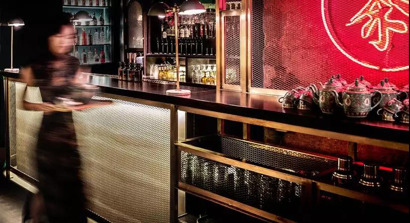 被廣東話的綠色霓虹燈點燃,從豪華的紅色窗簾反射出來,創(chuàng)造出一個飽和的Nicolas Winding Refn電影房間,在華麗的設計之中,茶室之旅中有很多新奇之處。菜單印在報紙上。有來自臺北,新加坡和香港的老式乙烯基唱片的自動點唱機出現(xiàn)60年代的曲調。這里有著中國飲料,被稱為“中國伏特加”,還能找到與花生和枸杞的新奇搭配。